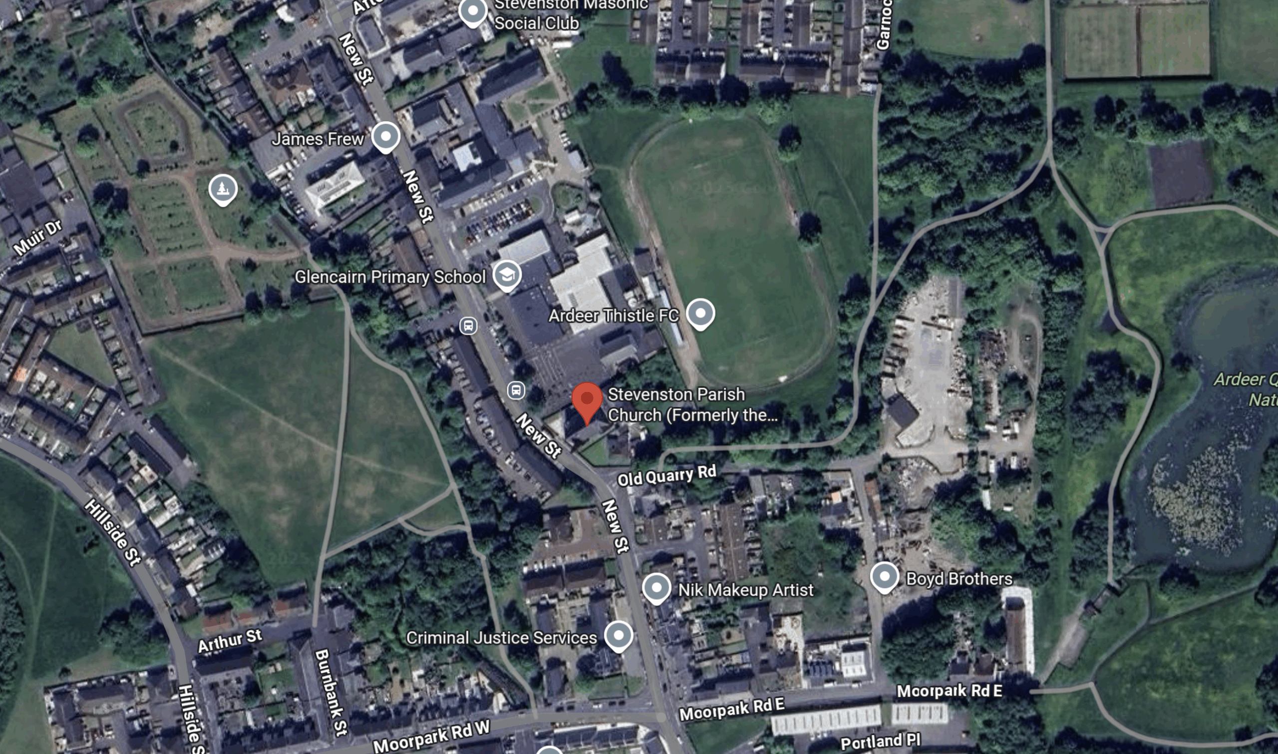 From Stevenston Cross – Head along New Street for 0.3 miles and the venue is on your left.